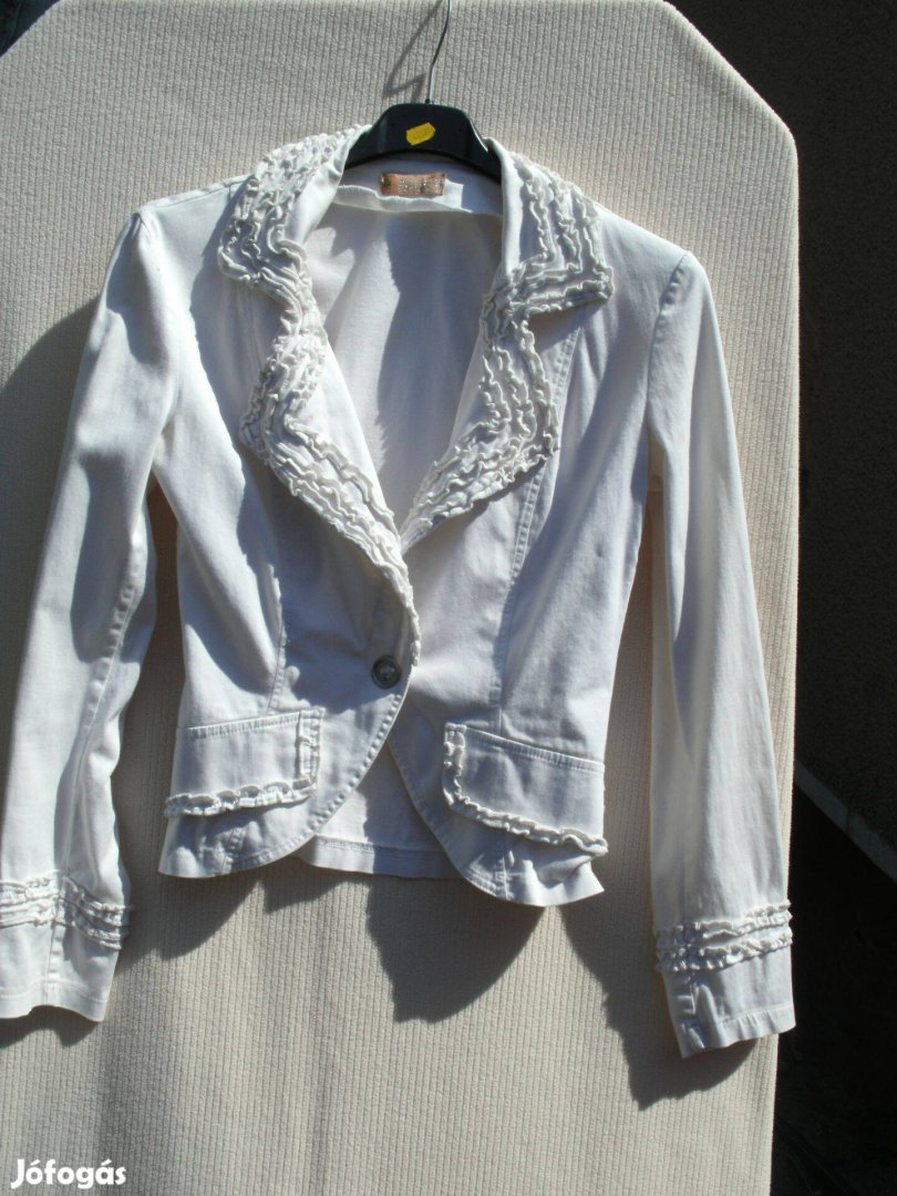 Punch M fehér zakó, blézer, gallérjánál ujja végén fodorral