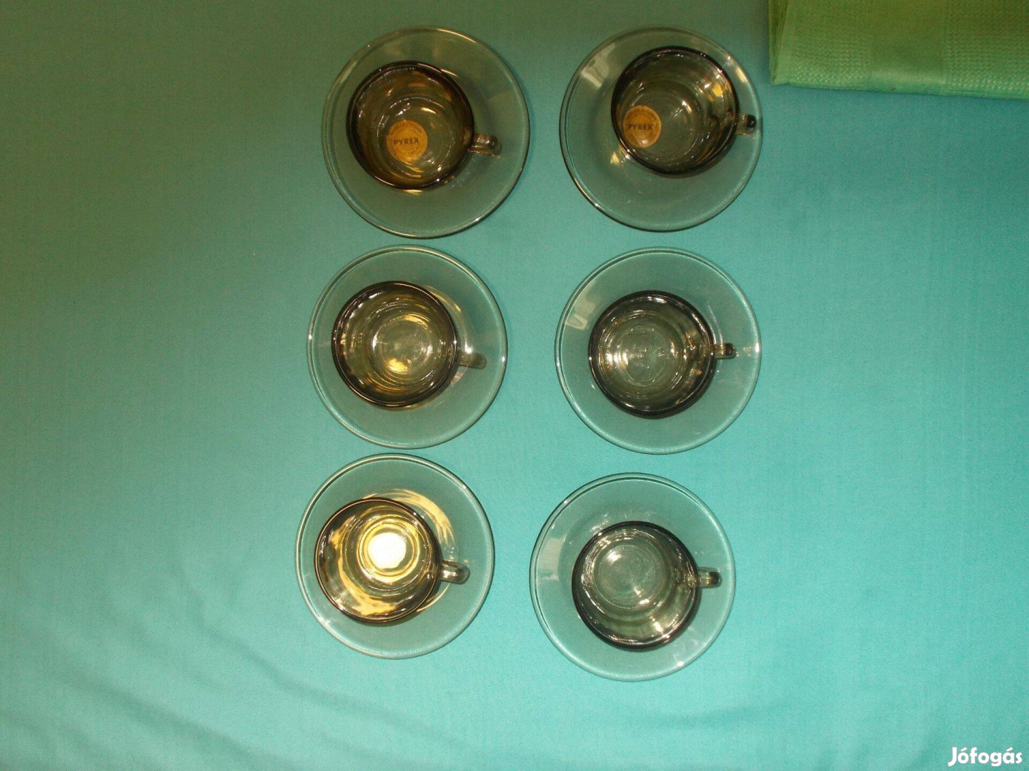 Pyrex 6 darabos kávés készlet eladó. Barna színűek a csészék és a tányér alátétek is.