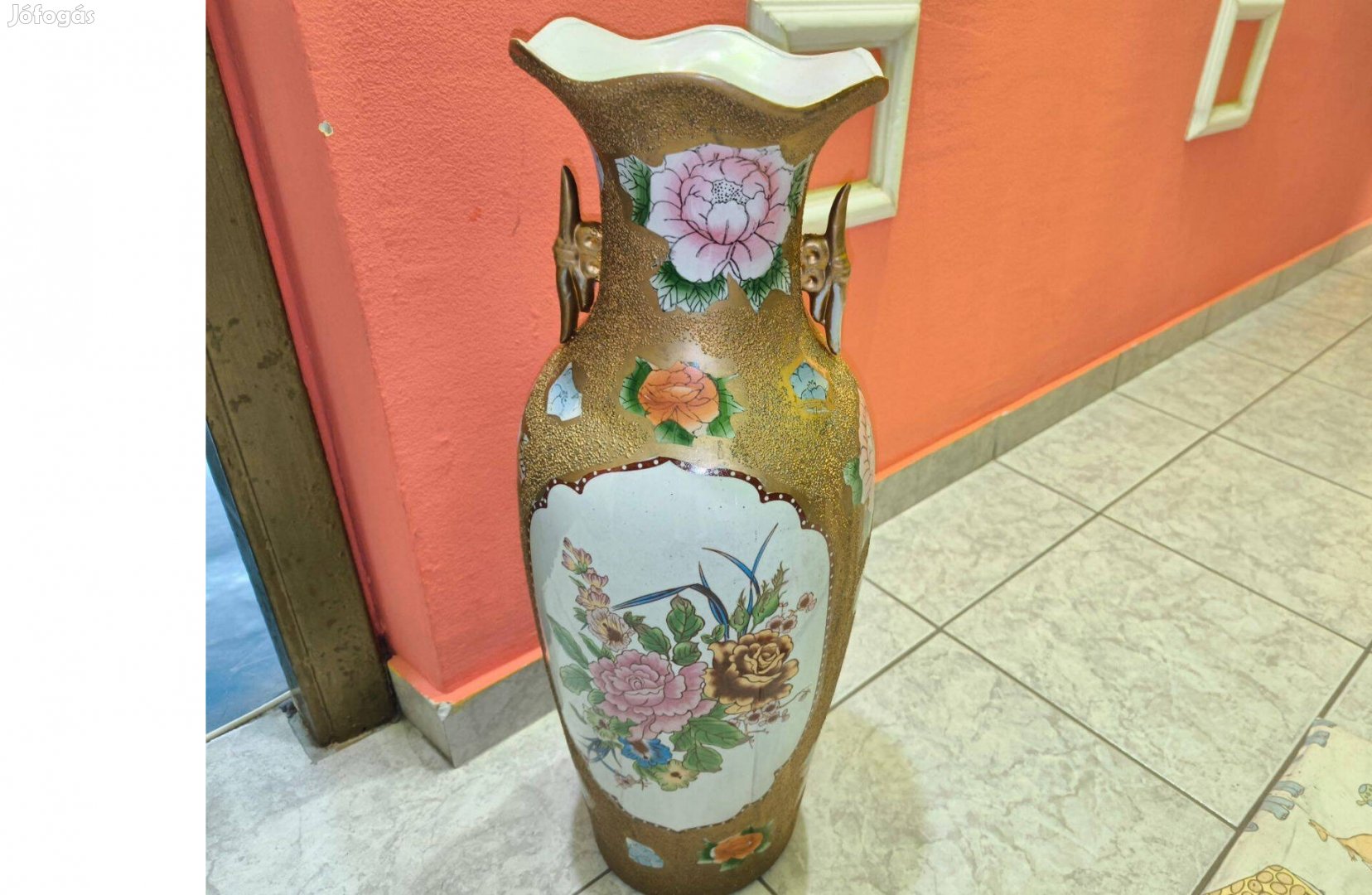 Régi Keleti porcelán nagy padlóváza , 60cm magas , kézzel festett , arannyal díszítve , hibátlan , eladó