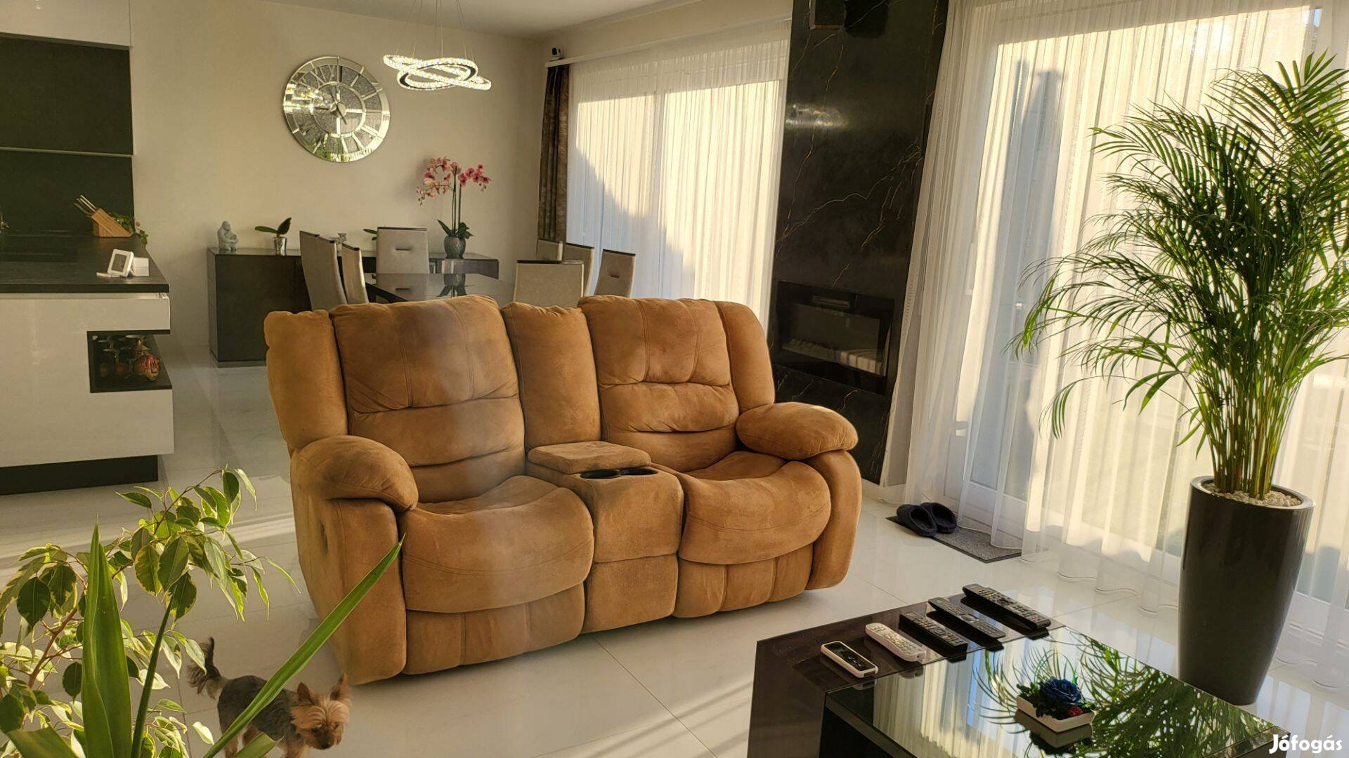 Eladó a képen látható relax kanapé. 2 személyes, manuális karral, a képen látható sérüléssel. Anyaga nedves kendővel könnyen tisztítható. Az ár irányár!!!
