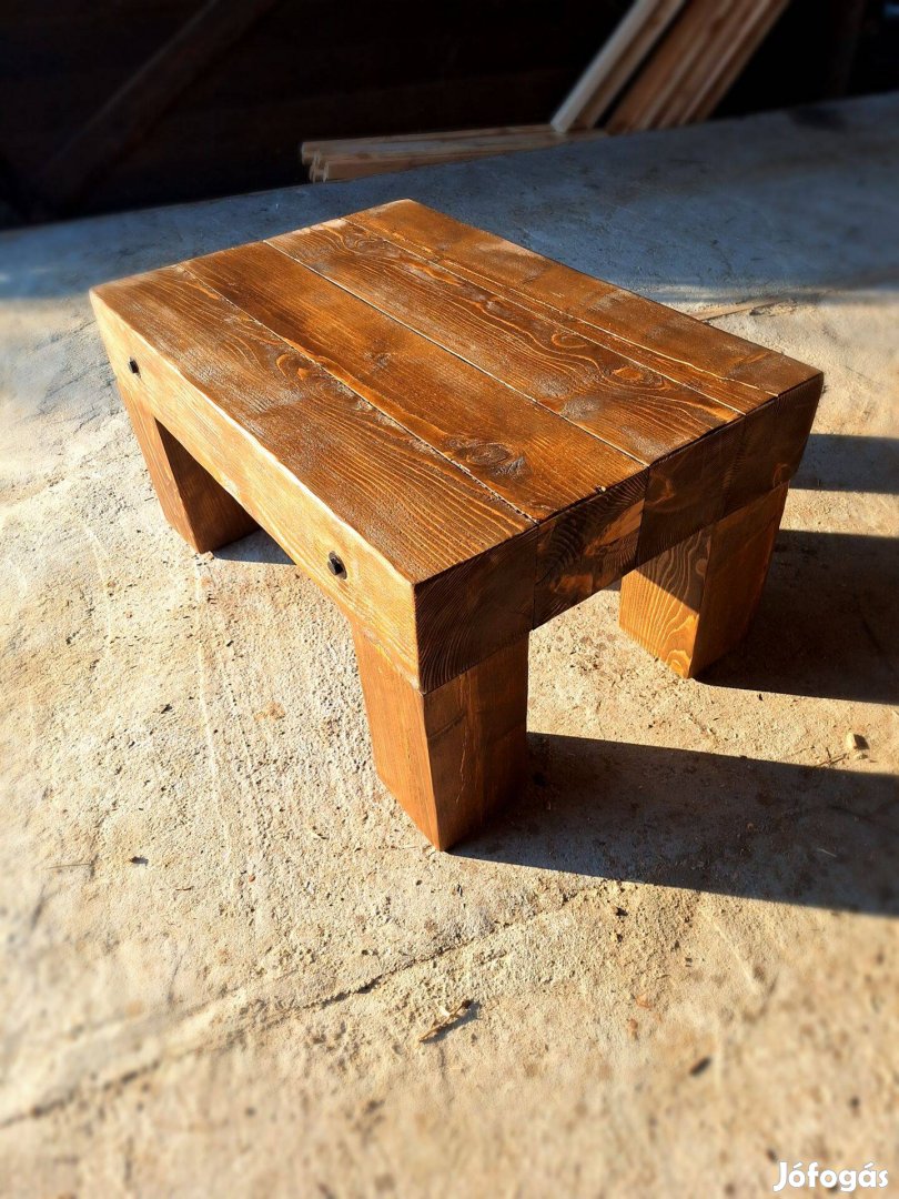 Rusztikus tömör fenyő fa dohányzóasztal, gerendából készült