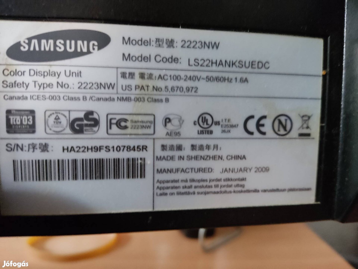 Eladó egy jó állapotú Samsung Syncmaster 2223NW monitor.