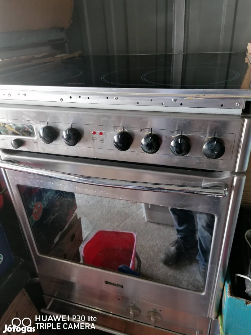Grillezős légkeverős sütő, szép állapotú kerámia lap. A lap mérete!!!! Beépítési méret egyezik a hagyomanyos méretű lappal! Üveg szélesség 60 cm, széles crom keret miatt 64 cm a teljes szélesség méret. Pirolotikus, Halogén betét