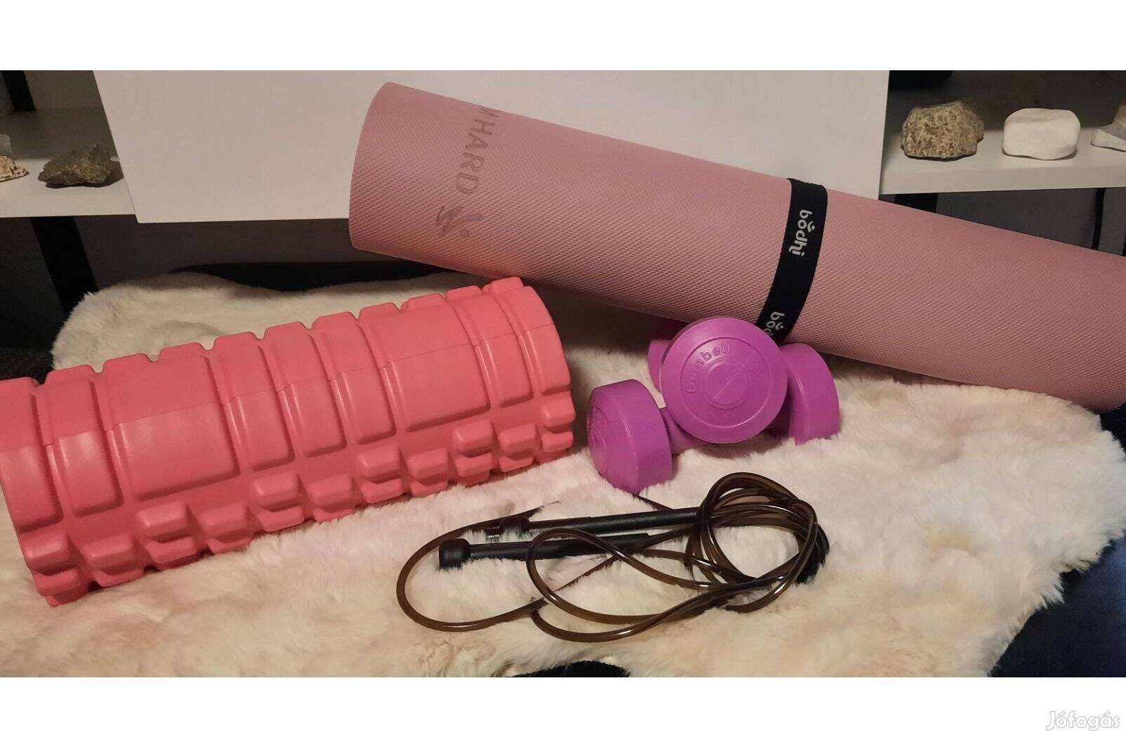 Fitnesz eszközök egyben eladó. A kézi súlyzó 1 kg-os.