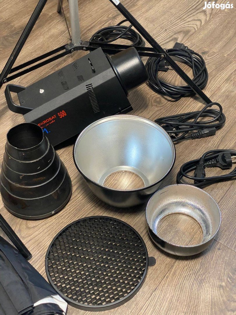 - 3db Mikrosat 500 studióvaku. Az egyik picit viseletesebb. Mindhárom villan szépen, kettőben kiégett a modellfény izzója. (2.900 Ft Fotopluson)