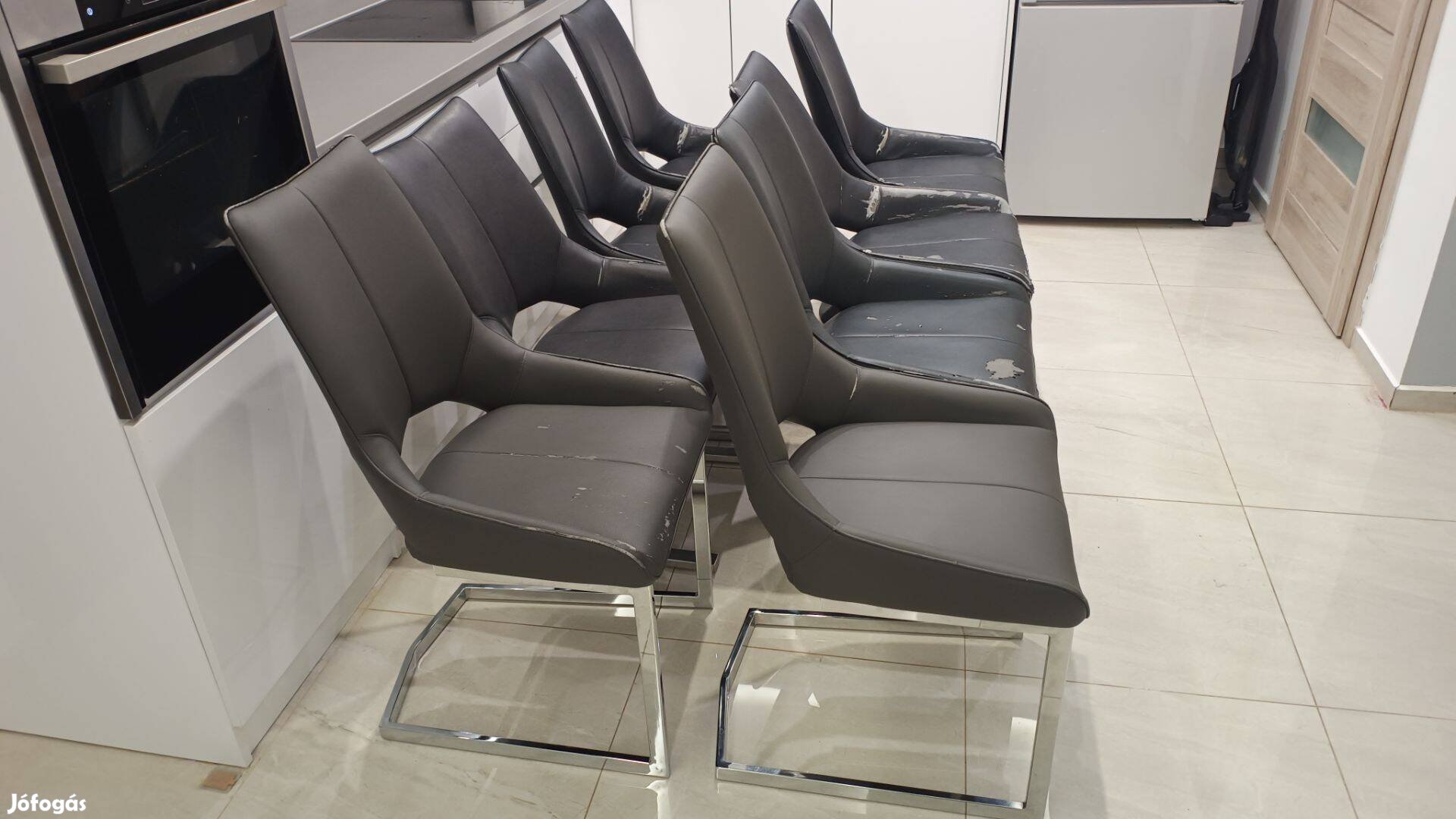 8db szánkótalpas szék a képeken látható állapodban eladó. 6 egyforma, a másik kettő másfajta, (jobb állapatú) de az űlő felülete megegyezik a 6 egyformáéval. Felújítást igényel a 6 egyforma biztosan. Jelenleg 1db ilyen új szék ára 49.990.-Ft