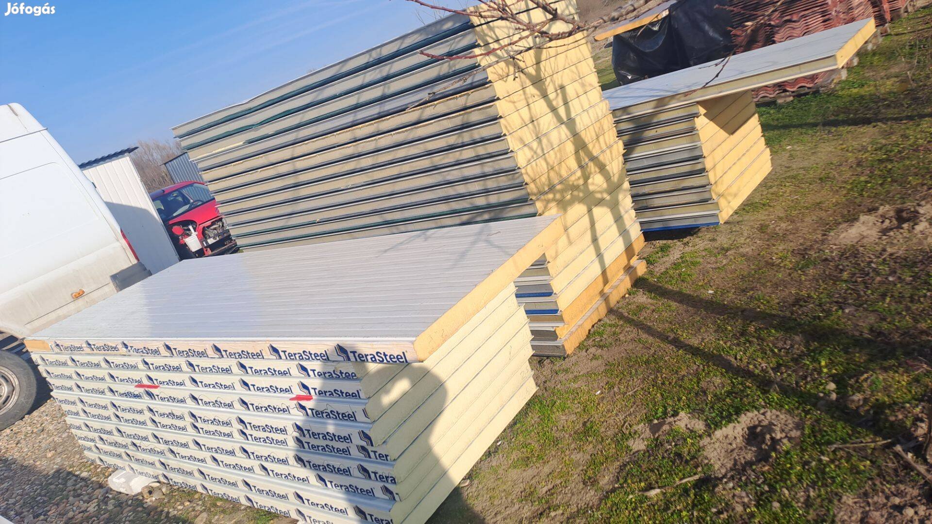 Eladó a képen szereplő 8 cm vastag 2.5 3 méter hosszú és 1 méter széles másod osztályú szendvicspanel.