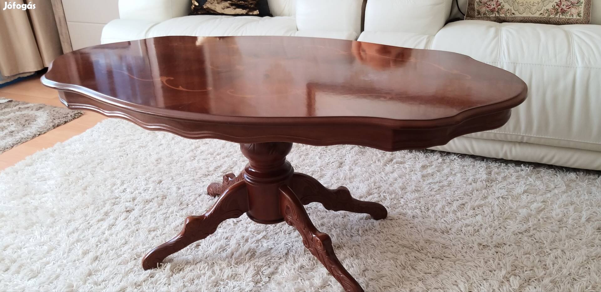 Szép intarziás tömörfa dohányzóasztal eladó.