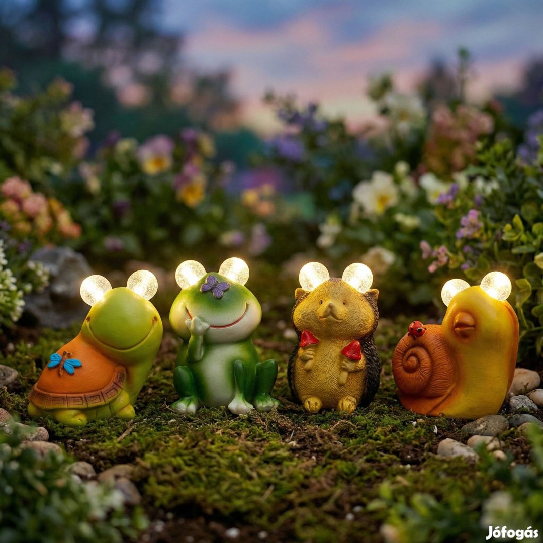 Tegye vidámabbá kertjét vagy erkélyét ezekkel a szolár állatfigurákkal, amelyek különböző formában érhetők el: csiga, süni, béka. A melegfehér LED-ek kellemes, hangulatos fényt biztosítanak, így nappal díszként, este pedig dekoratív világítóelemként szolgálnak. A beépített napelem napközben tölti az akkumulátort, így a lámpa sötétedés után automatikusan bekapcsol. A kis figurák kiválóan elhelyezhetők virágágyások szélén, kerti utakon vagy akár erkélyeken és ablakpárkányon is. Műgyantából, műanyagból és üvegből készültek, így esztétikusak és időjárásállóak is egyben. 11.429.a