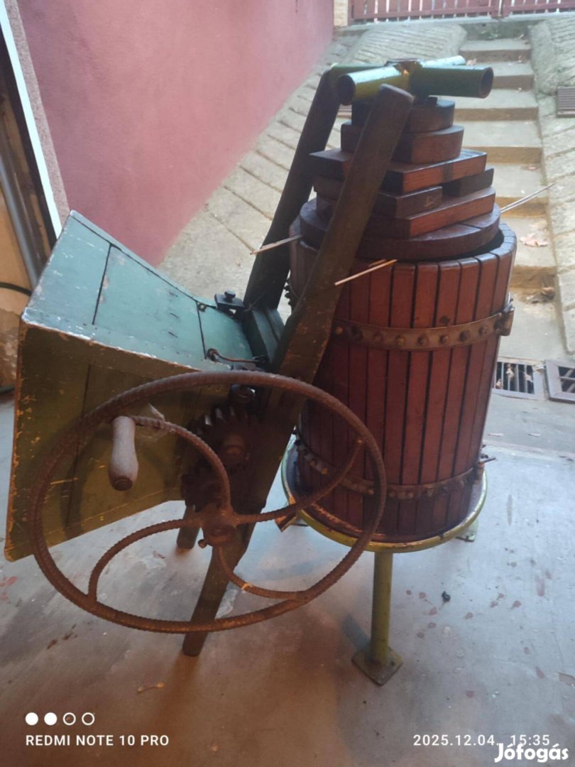 Szőlőprés ( 40 literes ) és szemzúzó daráló valamint két darab hord kosaras üvegballon ( 50 literesek ) eladók. A garnitúra ára: 70,- eFt.