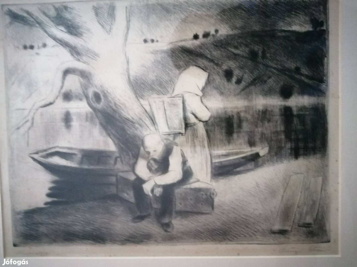 'Öreg halász " rézkarc, üvegezett keretben eladó. A kép 39x29, a keret 56x 48 cm. (Szőnyi Istvan 1894-1960)