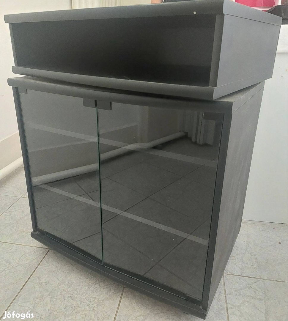 Fa szekrény, üveg ajtókkal, polcos, felül egy elforgatható rész. Méret: 70 x 50 x 80 cm szé: mé: ma