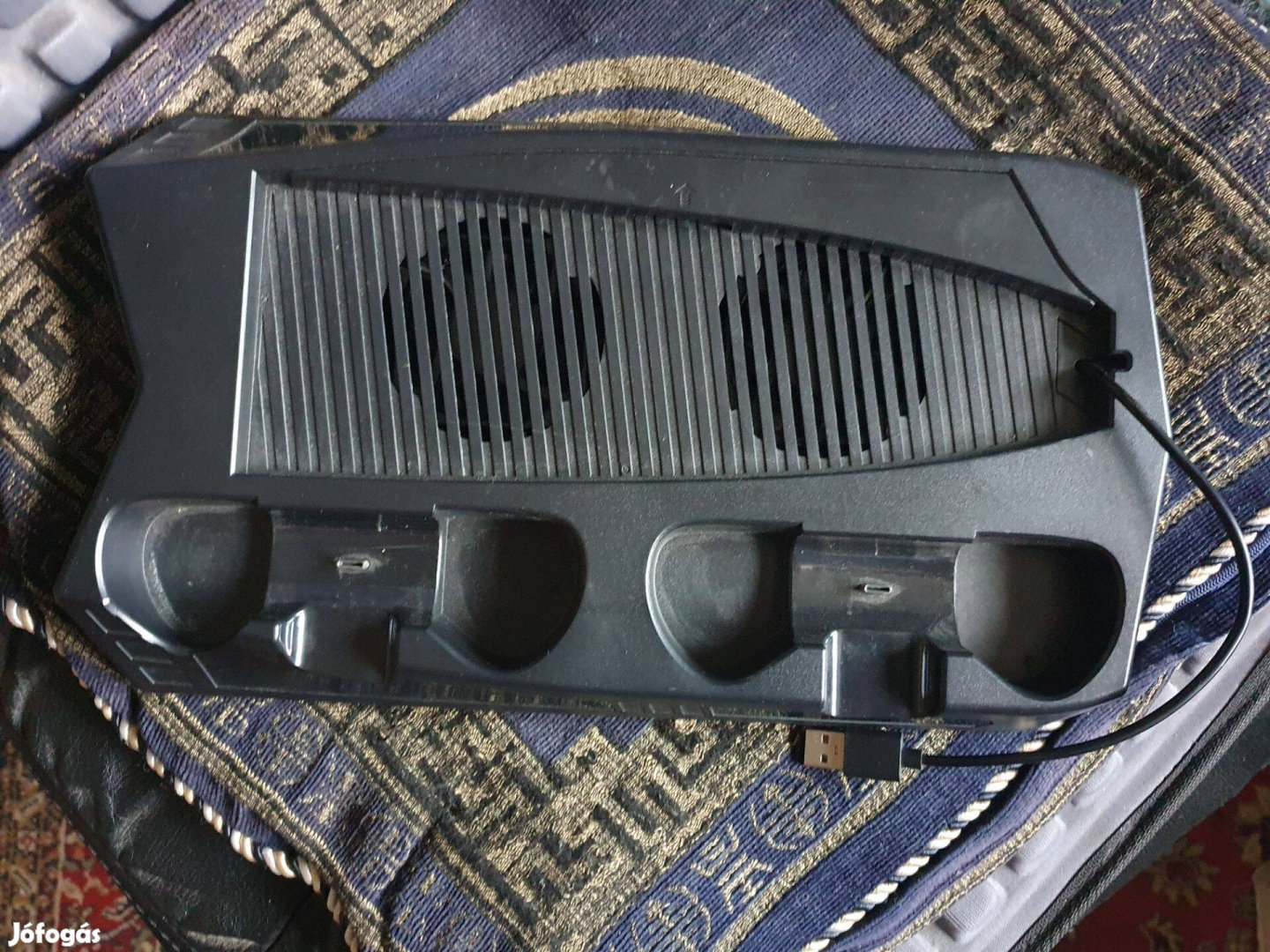-Függőleges állvány PS5 Digital Edition/Ultra HD számára + 2 hűtőventilátor + 2 vezérlő töltőállomás kijelzővel + 3 USB HUB port + 1 USB kábel.