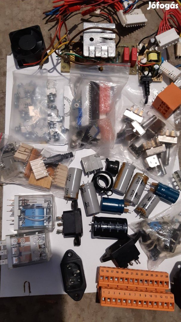 Eladó vegyes alkatrészek, elkók, iec aljzatok, 2db 24V relé Rina 60.33, néhány csatlakozó/ nyákba ültethető sorkapocs, trimmer potik, egy épített triakos szabályzó poti nélkül, pár régi fajta kapcsoló talán Atari TV játékból. 4db új 3x8 pines szalagkábel csatlakozó, 4db új 2x8 pines szalagkábel csatlakozó, pár Hameg oszcilloszkóp kerámia szigetelő tengelyösszekötő, távtartó és gomb. Valamint Tektronix 2235 táp tranzisztor lefogató kerámia és műanyag.