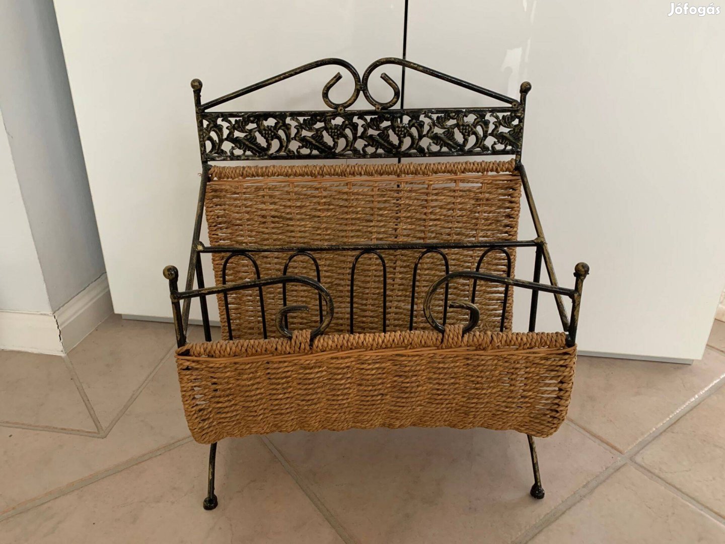 Tengerifűből fonott és kovácsoltvas újságtartó