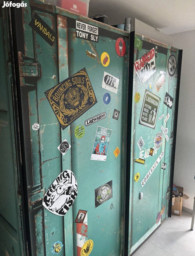 Konténer mintás , tolóajtós gardrób eladó lapra szerelt ,hibátlan állapotban. Fiús szobába akár ?rengeteg polc van benne