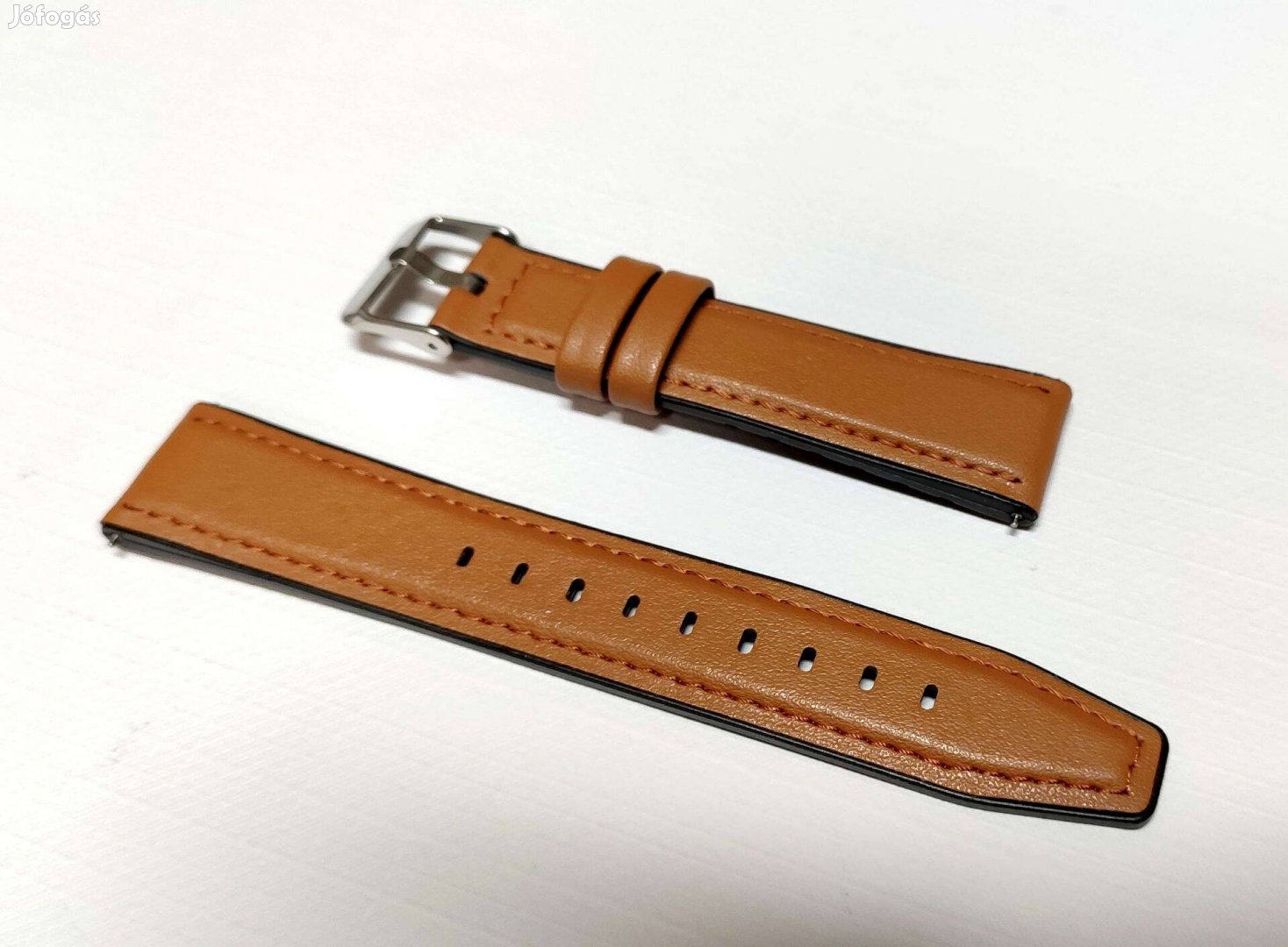 Új, kényelmes, szép, világos barna színű, erős, tartós, különleges, bőr és szilikon kombináció. 20 mm széles, a csatos része 78 mm, a másik 122 mm hosszú.