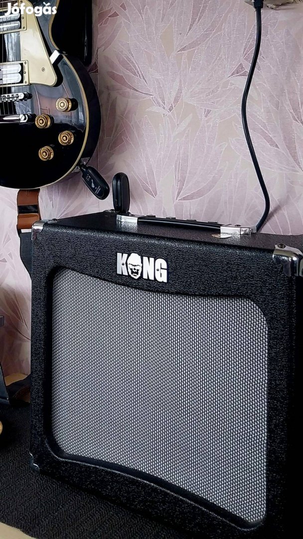 30 Wos effektes,modellezős kombó eladó..30 W Channels: 1 Loudspeakers: 1x 8" EQ: Bass/mids/treble Effects: Effects Processer Headphone output with speaker mute: yes Special Features: AUX In, Tuner, Tap Tempo Dimensions (Wxhxd): 40,0 x 38,5 x 20,0 cm Weight: 8,7 kg Optional accesories: Kong FS-2 2-way Momentary With the Chimp Thirty, Kong has a versatile, handy modeling combo with extensive features in its range. The 30-watt combo offers 11 amplifier and 11 effect modelings, and your own sound creations can be stored in 3 user memory locations. An optional footswitch can be used to switch through the memory locations