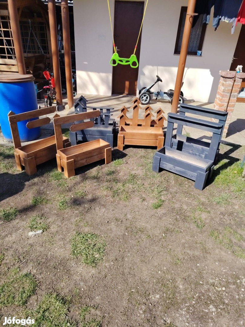 Saját készítésű virágtartó láda eladó! 2-sor lazúrral kezelve!Barna, antracit színben, vagy akár festés nélkül is!60x20cm belső méret.Kérésre egyedi méret és forma is kérhető !Nem postázom!Érd.: