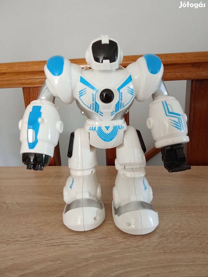 Eladó 26 cm magas zenélő,világító,forgó,menetelő robot.