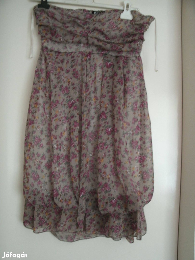 Zeva koktél, party ruha. Pánt nélküli, háta gumis. Virágos