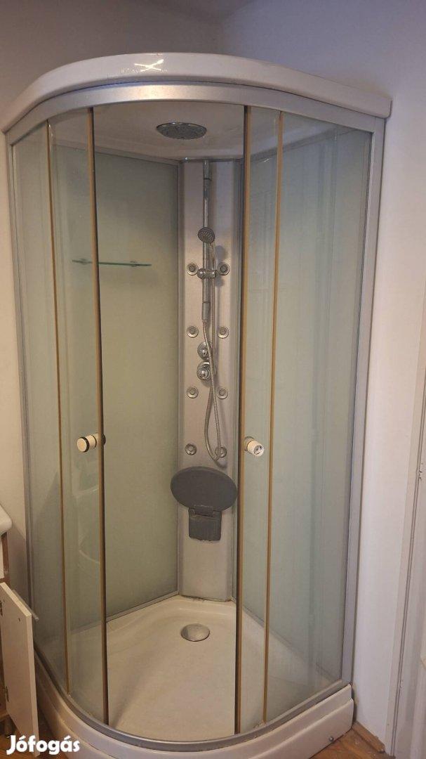 Zuhanykabin 90x90 , 3 állású zuhanyzási lehetőséggel, ülőkével, hátfalas, teljesen zárt felül is, eladó.