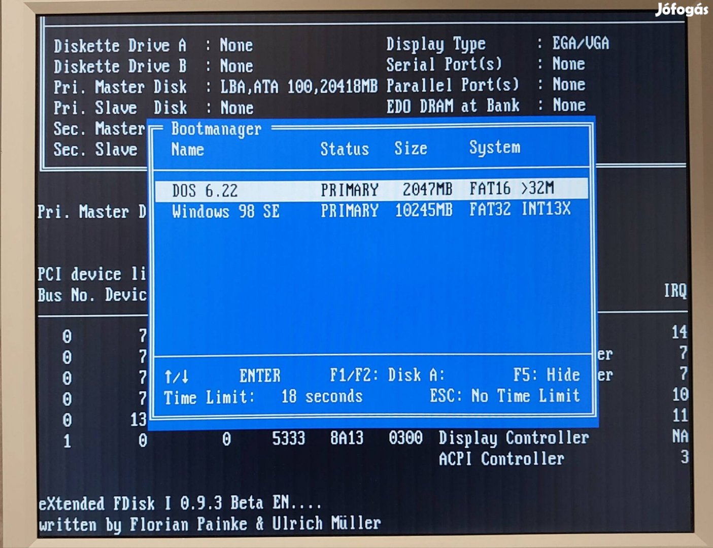 Így a Dos 6.22 vagy a windows 98 betöltődik.