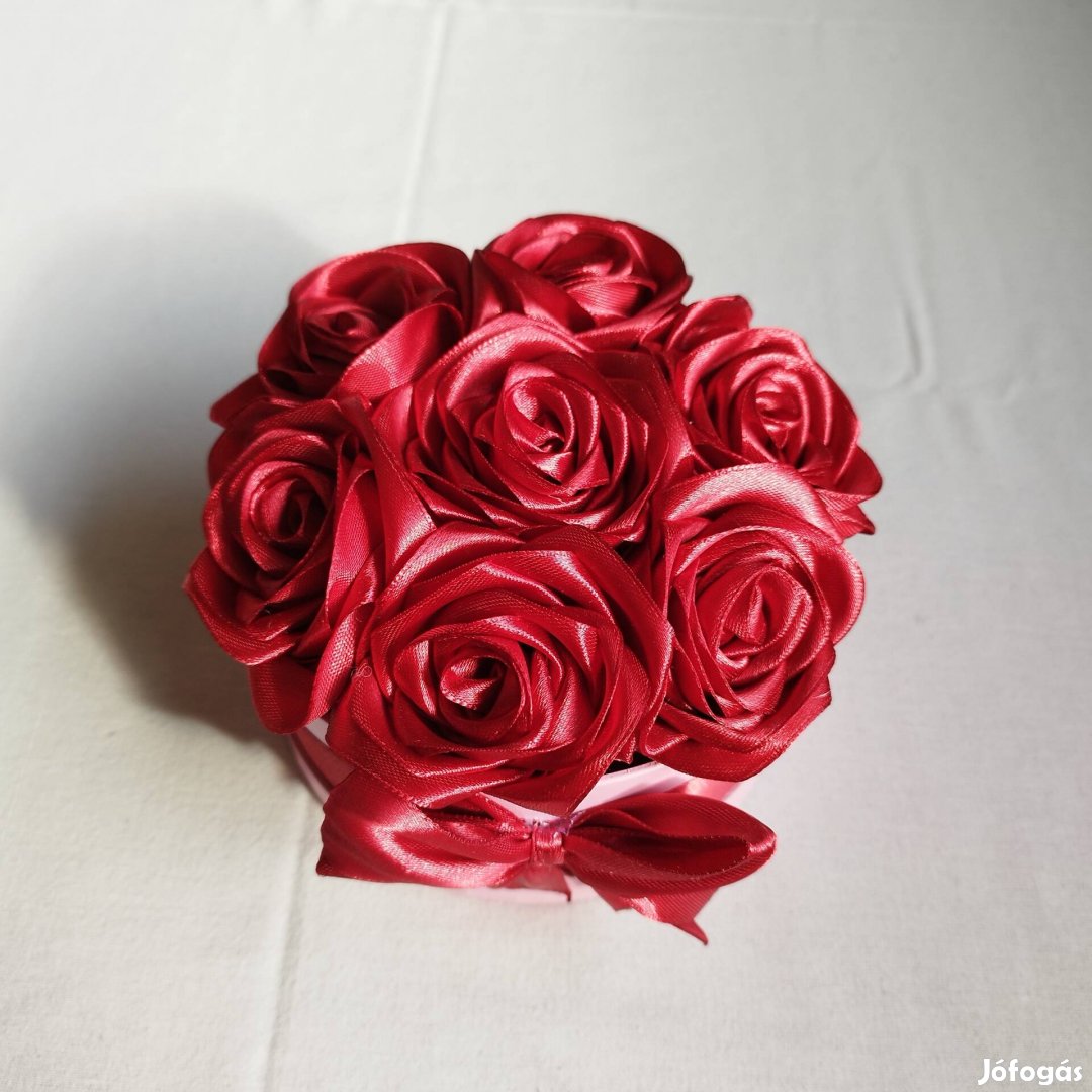 A rózsák szatén szalagból készültek