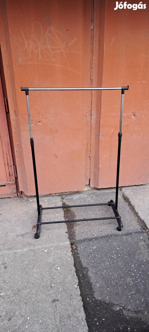 Ruhatartó állvány. Az egyik magasság állitó műanyag csavar hianyzik de igy is állitható stabilan
