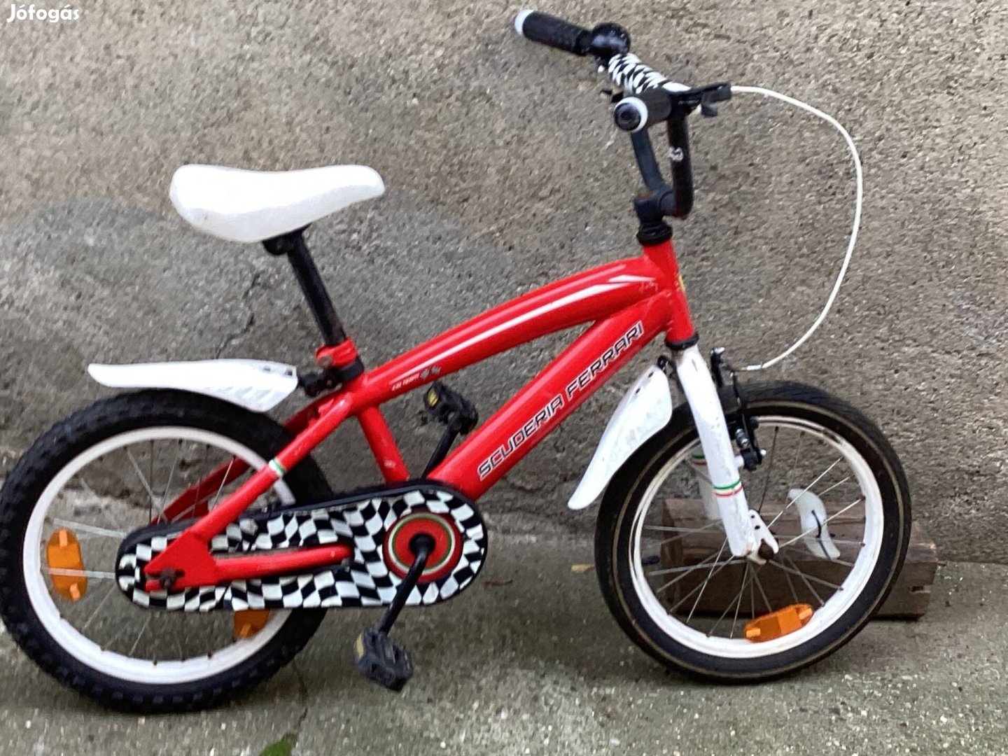 Eladó a képen látható 16 fiú kerékpár jó állapotú kisebb karolás vannak és a ülésen van hiba