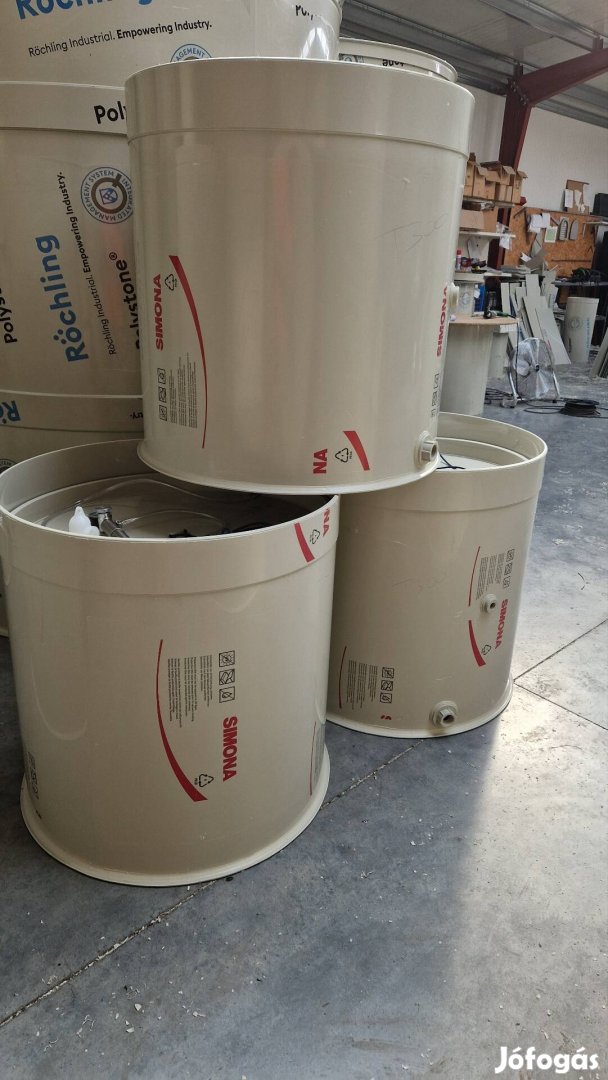 PP műanyag, 200 litetes tartály, komplett tömlős-pumpás úszófedéllel, gyártótól eladó. 53.000,-+áfa.