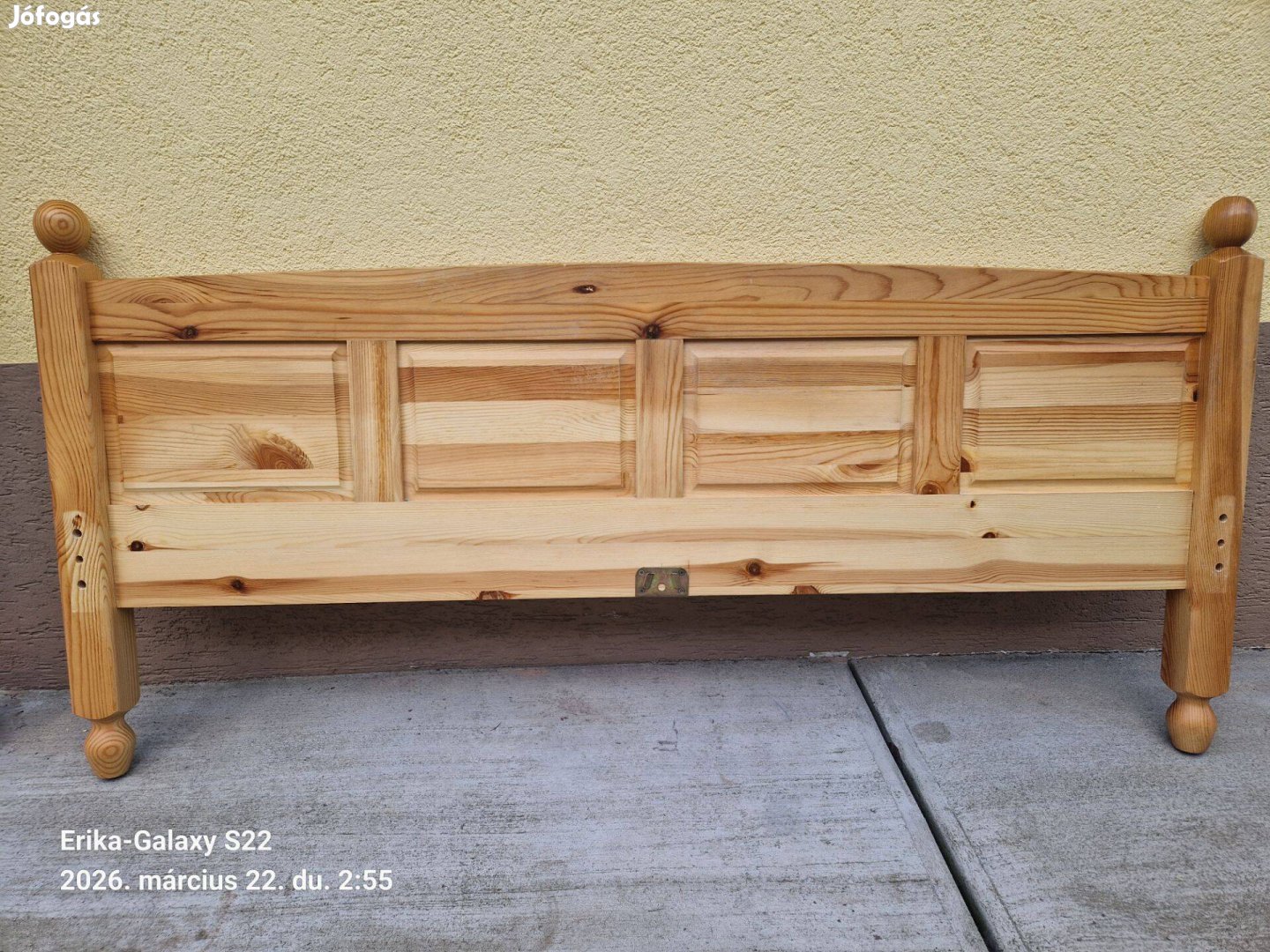 Asztalossal gyártatott nagyon stabil, masszív borovi fenyő ágykeret.(már szét van szerelve). További hirdetéseimben megtalálható hozzá az ágyrács és a matrac is.