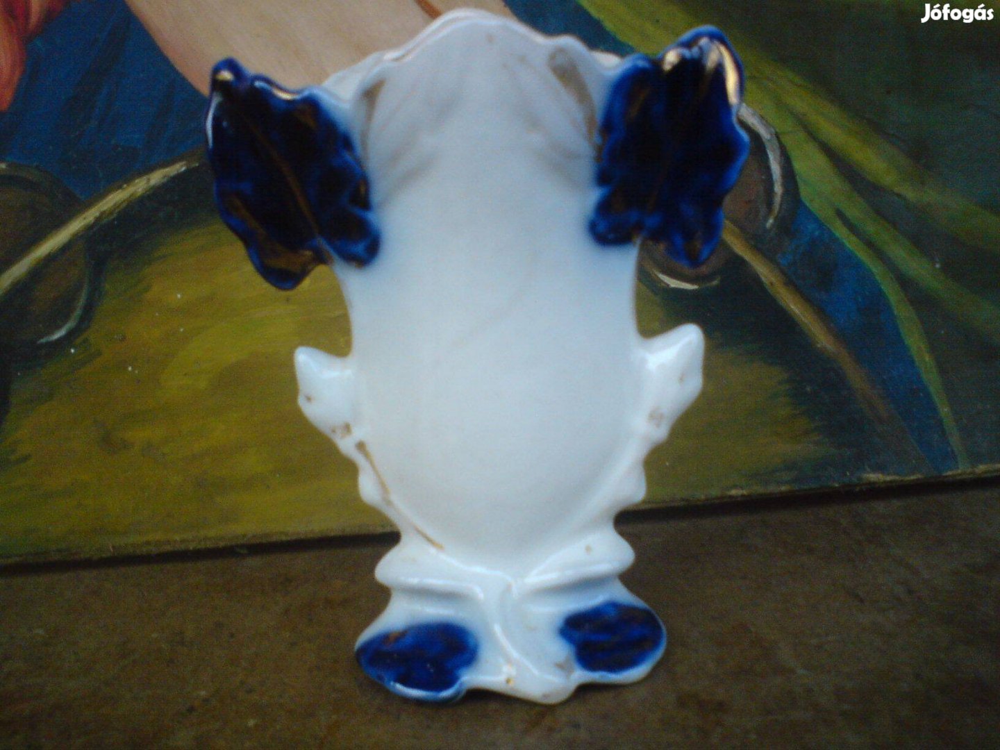 Eladó a fotón látható 10 cm-s sorszámozott ibolya váza antik, az aranyozás már kopottas, háta felső részén van egy kis lepattanás,