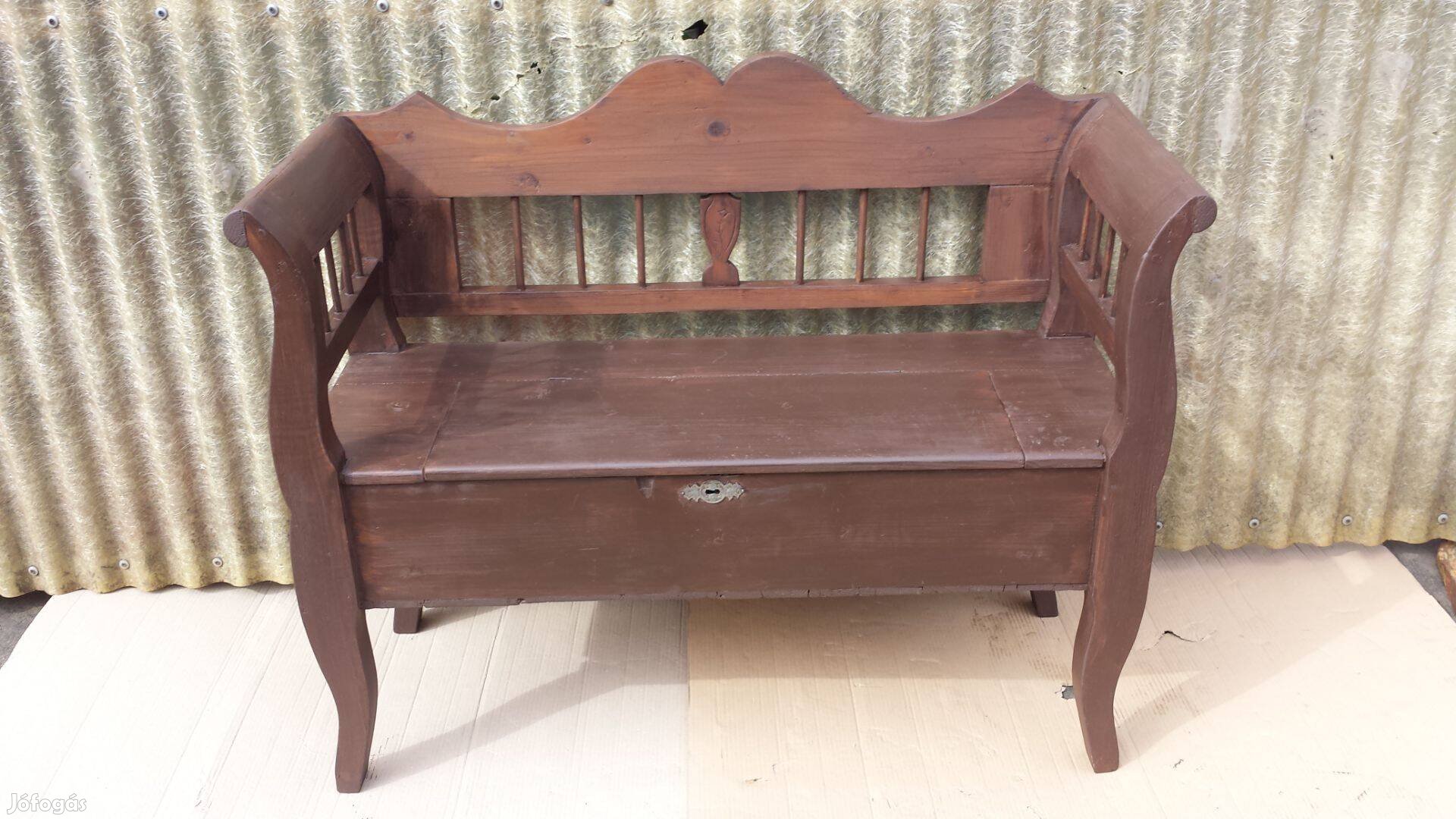 Antik régi népi lóca karos pad láda paraszt kerti padláda felújítva