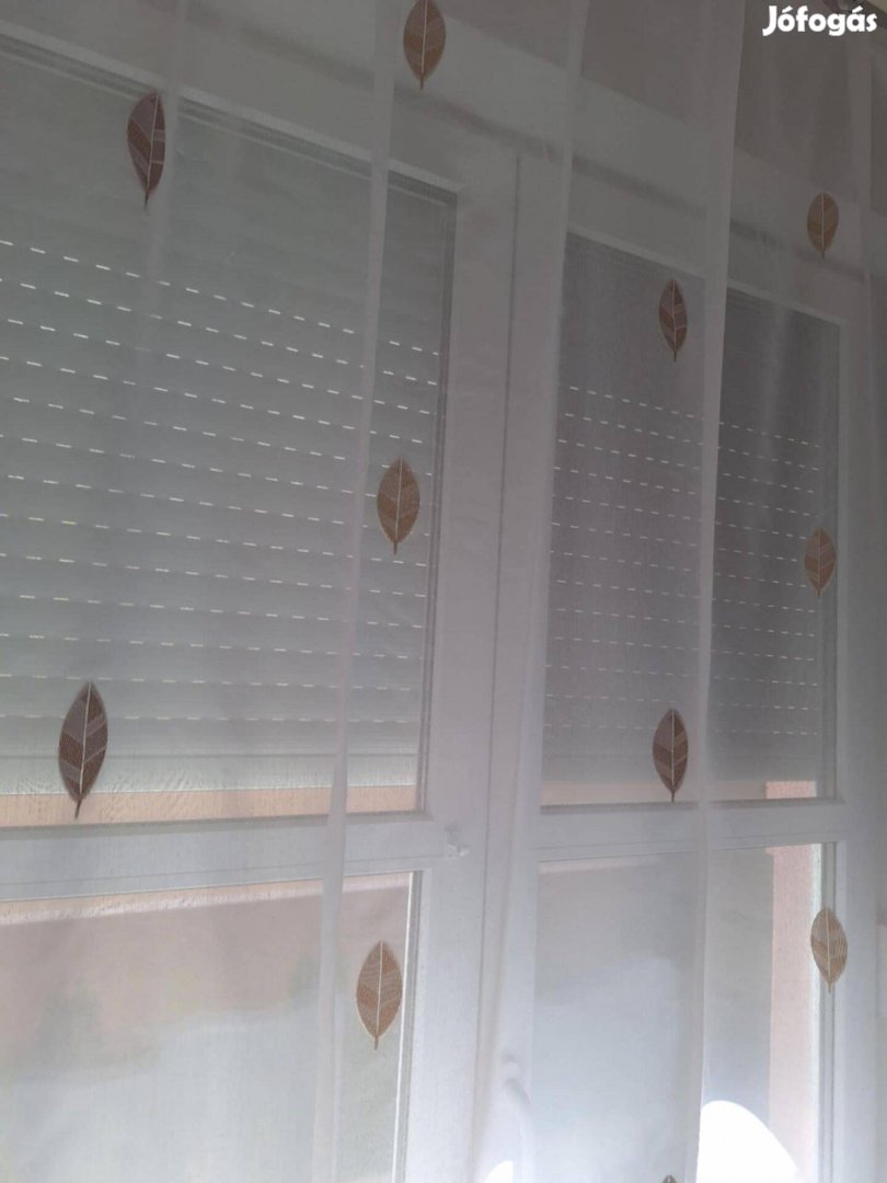 Új hófehér alapon barna, és aranybarna leveles, fényáteresztő, nyírt mintás fényáteresztő függöny. Alján ólomzsinórral (180 cm hosszú) Matt hatású, pamutos, vasalás könnyített, dekoratív, minőségi függöny anyag, a levelek fényben csillámosak 2 980 Ft/m