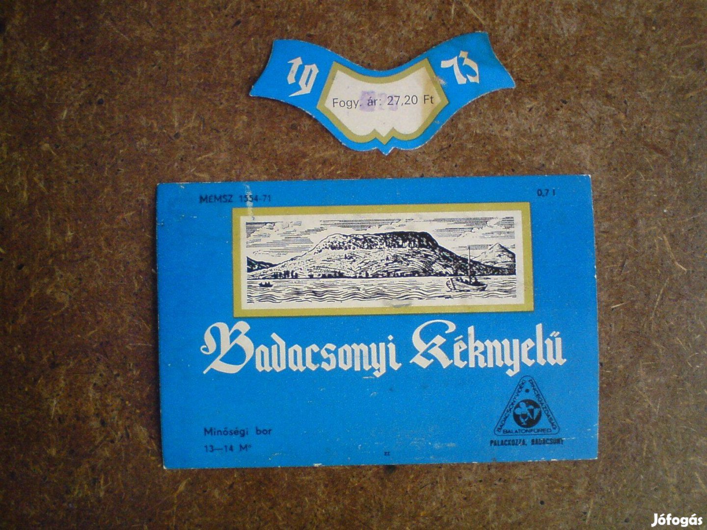 Eladó a fotón látható boros címke nyakcímkével. "Badacsonyi kéknyelű"- 70-es évek eleje, kb. 50 éves címke