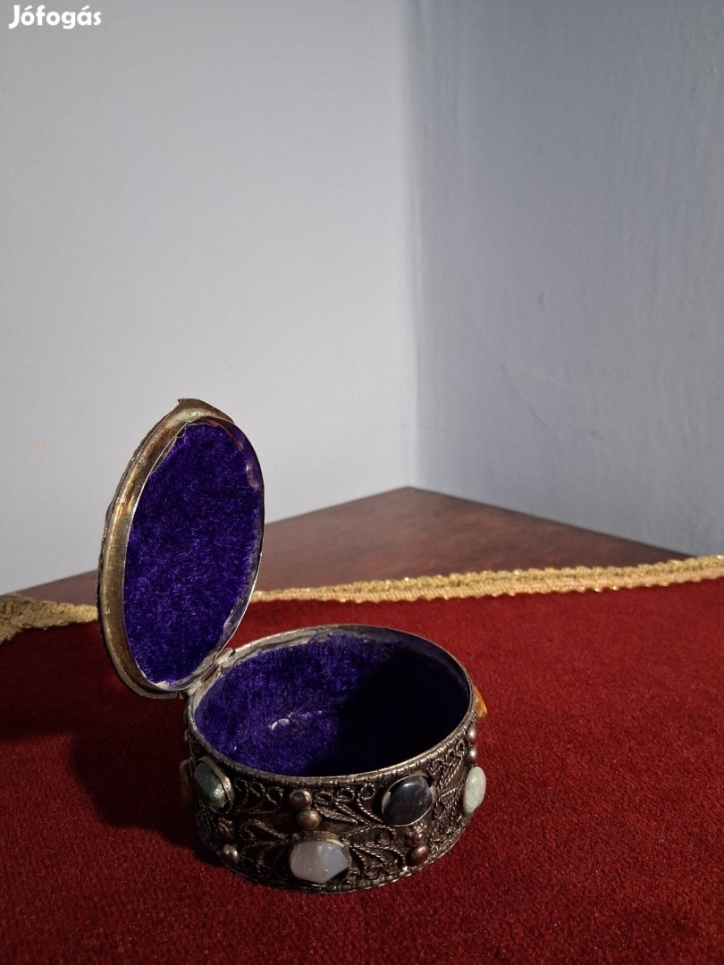 Egyedi készítésű ékszeres dobozka, filigrán technikával díszitett 4,5 x 7,5 cm