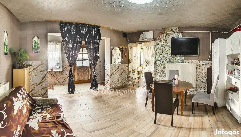 A központi elhelyezkedésű ingatlan a település egyik csendes mellékutcájában található: a mindennapi élethez szükséges szolgáltatások, a polgármesteri hivatal, élelmiszerbolt, orvosi rendelő, patika, bank, pékség, templom, buszmegálló, mindössze 2 perc sétával elérhetők. A részben alápincézett, tégla szerkezetű családi ház 1978-ban épült, tetőszerkezete ép, cseréppel fedett. A tágas terekkel rendelkező házon belül 1 nappali-étkező, 3 külön bejáratú szoba, 1 előtér, 1 konyha, 1 fürdőszoba, 1 WC került kialakításra, továbbá a nappaliból közvetlenül nyílik egy tároló a padfeljáróval és a kazánház. A házban 2023 óta folyamatosan felújítási munkálatok zajlanak: 2023-ban hőszigetelt, fa és műanyag keretes ablakokat építettek be; újra húzták a kéményt, 2024-ben a nappali új hidegburkolatot kapott; kiépítették a központi fűtésrendszert, új vegyestüzelésű kazánt (nyitott rendszerű) szereztek be; a falakat gipszkartonnal vonták be, álmennyezetet készítettek, 2025-ben kicserélték a szennyvízhálózatot. Az előtérből nyíló hálószoba belső szigetelésére még idén sor kerül, ugyanakkor tervben van a kocsibeálló lebetonozása. Az összközműves házból a gázt kikötötték, a gázcsonk a ház előtt elérhető. Az ingatlanhoz tartozó 1148 m2-es telek ideális lehet állattartásra, konyhakert kialakítására, vagy egyéb gazdálkodásra. A parkolásra az udvarban álló tégla falazatú garázs nyújt megoldást. A kiváló lokációval rendelkező, jó elrendezésű családi ház megvásárlása kényelmes életet biztosíthat Ön és családja számára.