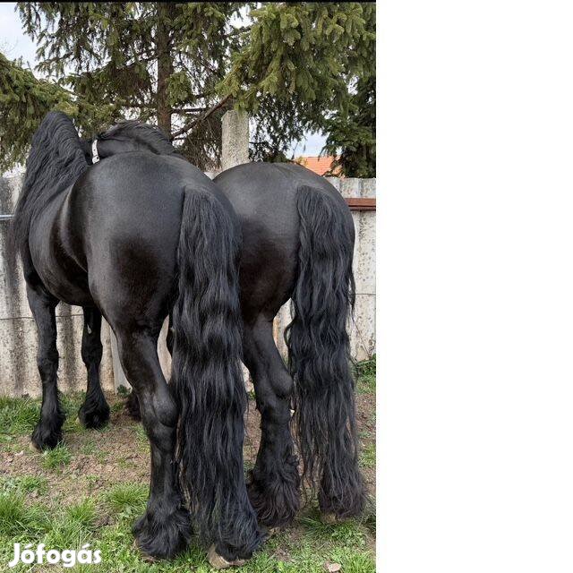 eladó a képen látható holland fríz csődőr lovak amik nagyon szép mozgásúak csippel útlevéllel ellátva 1-2ben fogat hajthatóak további információ telefonon