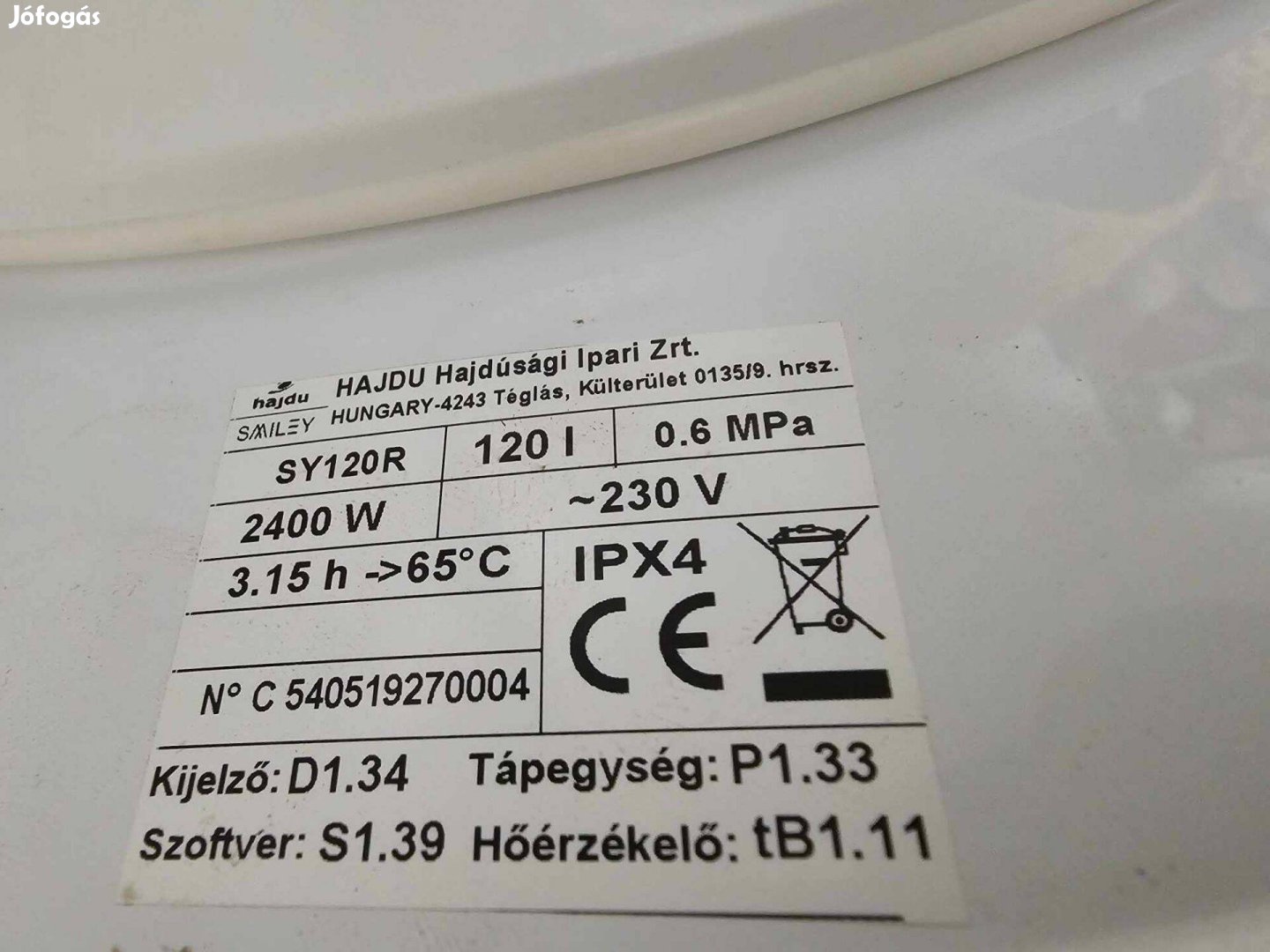 Eladó Hajdu 120l villanyboyler