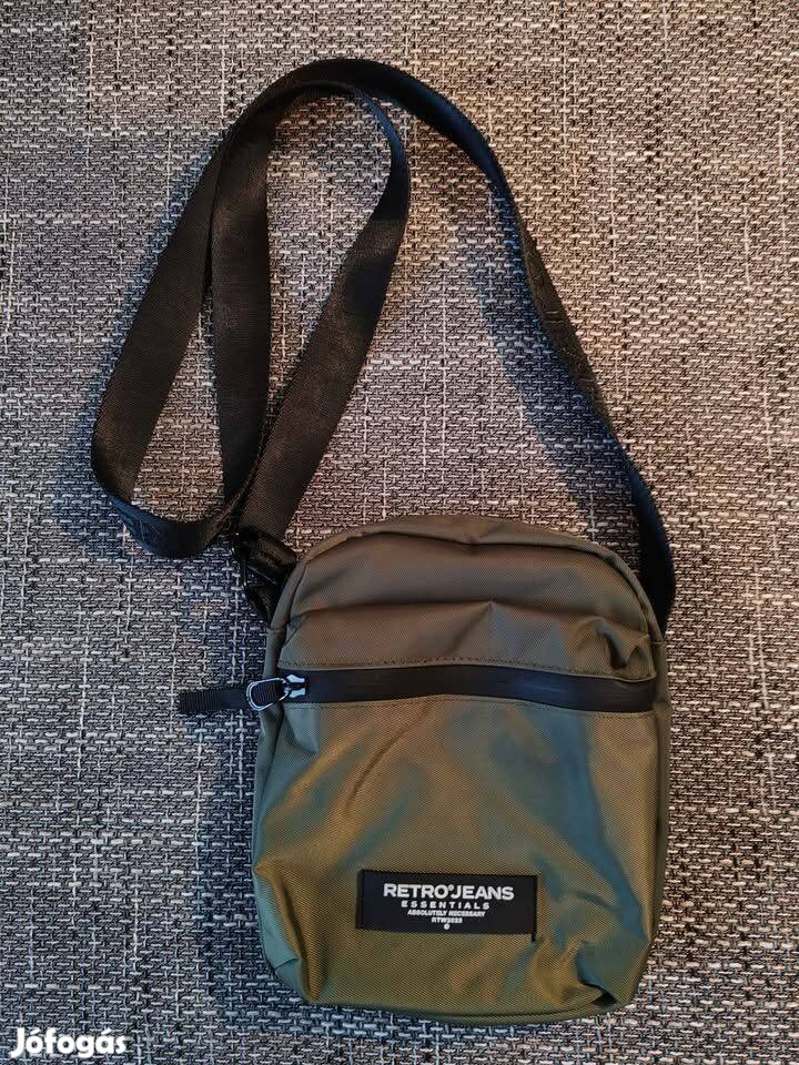 Eladó teljesen új Retrojeans (Balsa) férfi kistáska, khaki színben! Állítható vállpánttal, zipzáras záródással, belsejében kisebb zsebbel, elején egy nagyobb zsebbel, szilikon márkajelzéssel! Anyaga 100% poliészter! Szélesség 18 cm, mélység 4.5 cm, magasság 21 cm!