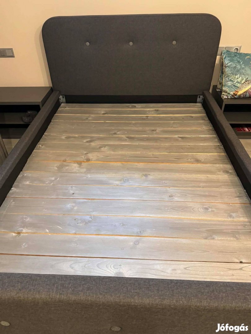 Eladó Egerben,egy vadonatúj yiskben vásárolt 140*200-as szürke színű franciágy.Új ára:124900.-Ft.ágyrács és matrac nélkül.Eladási ára:80000.-Ft.egyedileg készített masszív fa ágyráccsal,és 2 db.új éjjeliszekrény hozzá az ajándék
