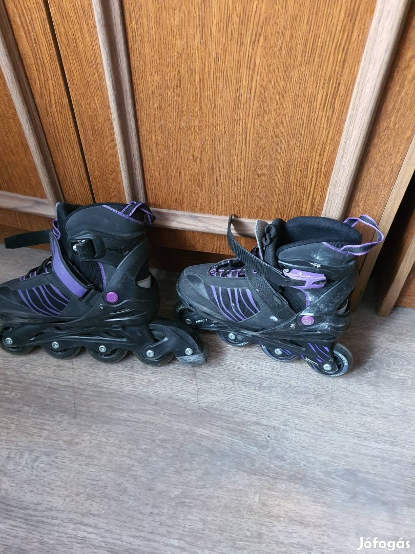 Eladó a képen látható fekete-lila színű görkorcsolya.