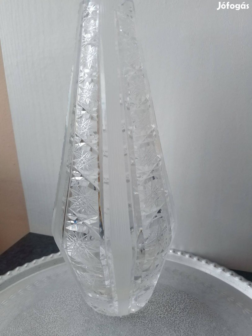 Eladó a képeken látható állapotban, használt, sérülésmentes kristály váza. Mérete: 260 mm magas. Átmérők: fent:40 mm, lent:60 mm; legszélsebb: 120 mm. Megtekintés és átvétel Gyöngyösön a közösen megbeszélt helyen. Nem postázom.