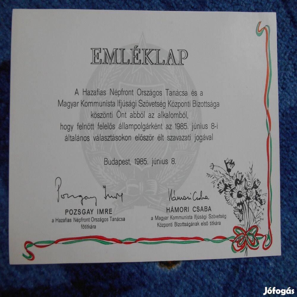 Első szavazók emléklapja