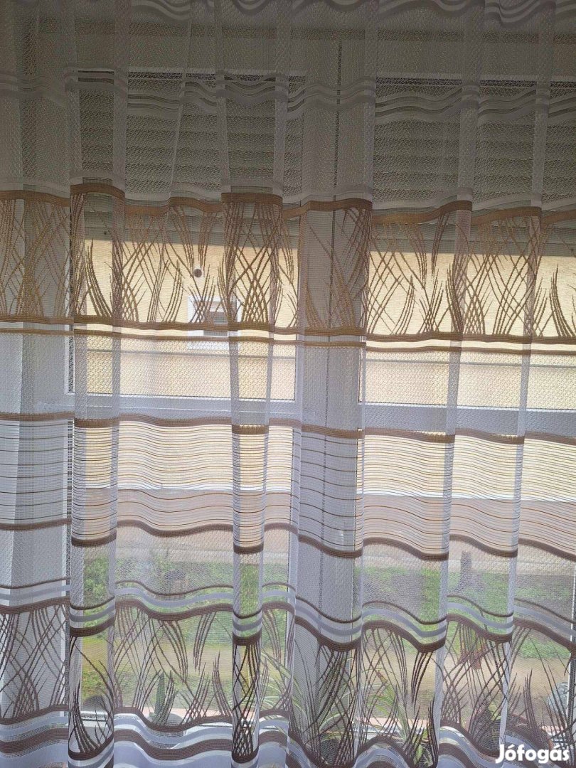 Új fehér alapon barna csíkos, dekoratív, behúzóval készre varrt zsakard függöny Vasalást nem igényel vagy csak keveset