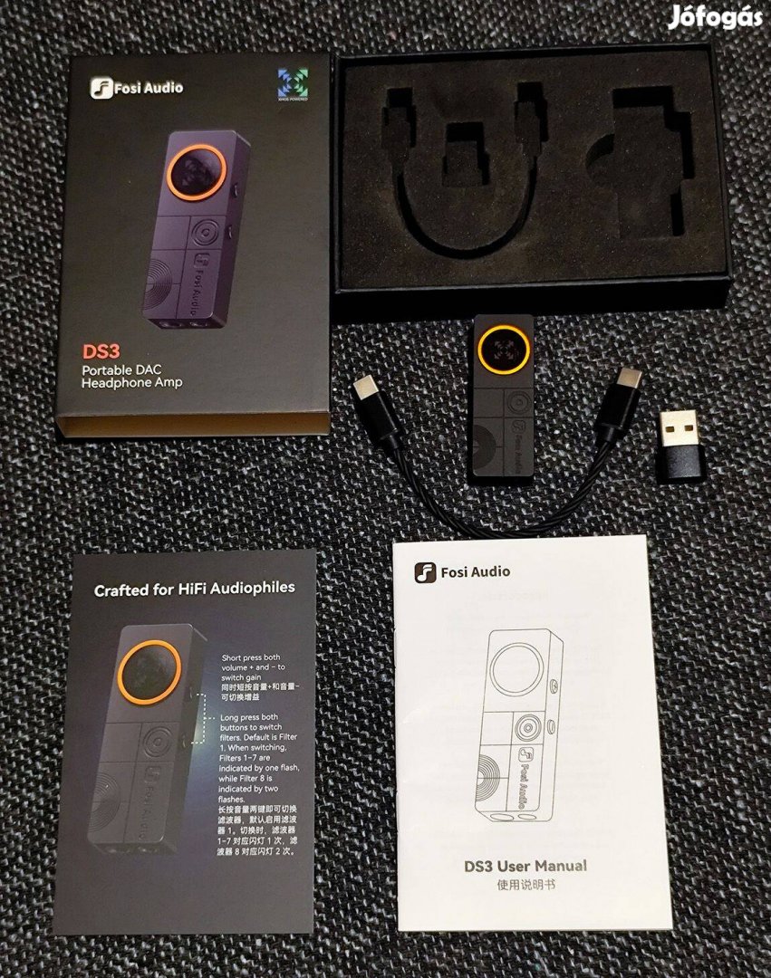 Fosi Audio DS3 hordozható USB dac amp és fejhallgató erősítő. Új!