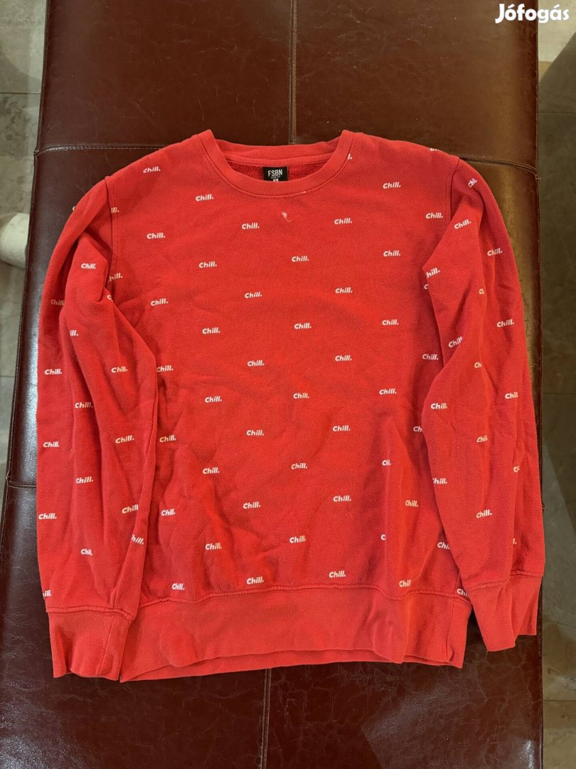 Piros Fsbn márkájú chill.-feliratú pulóver.