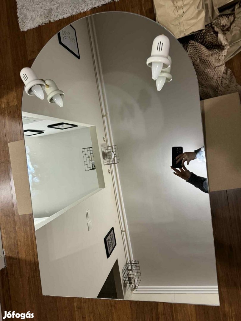 Eladó tükör, magasság 105 cm, szélesség 68 cm. Hibátlan, tetején bal és jobb oldalt beépített lámpafoglalat, E14.