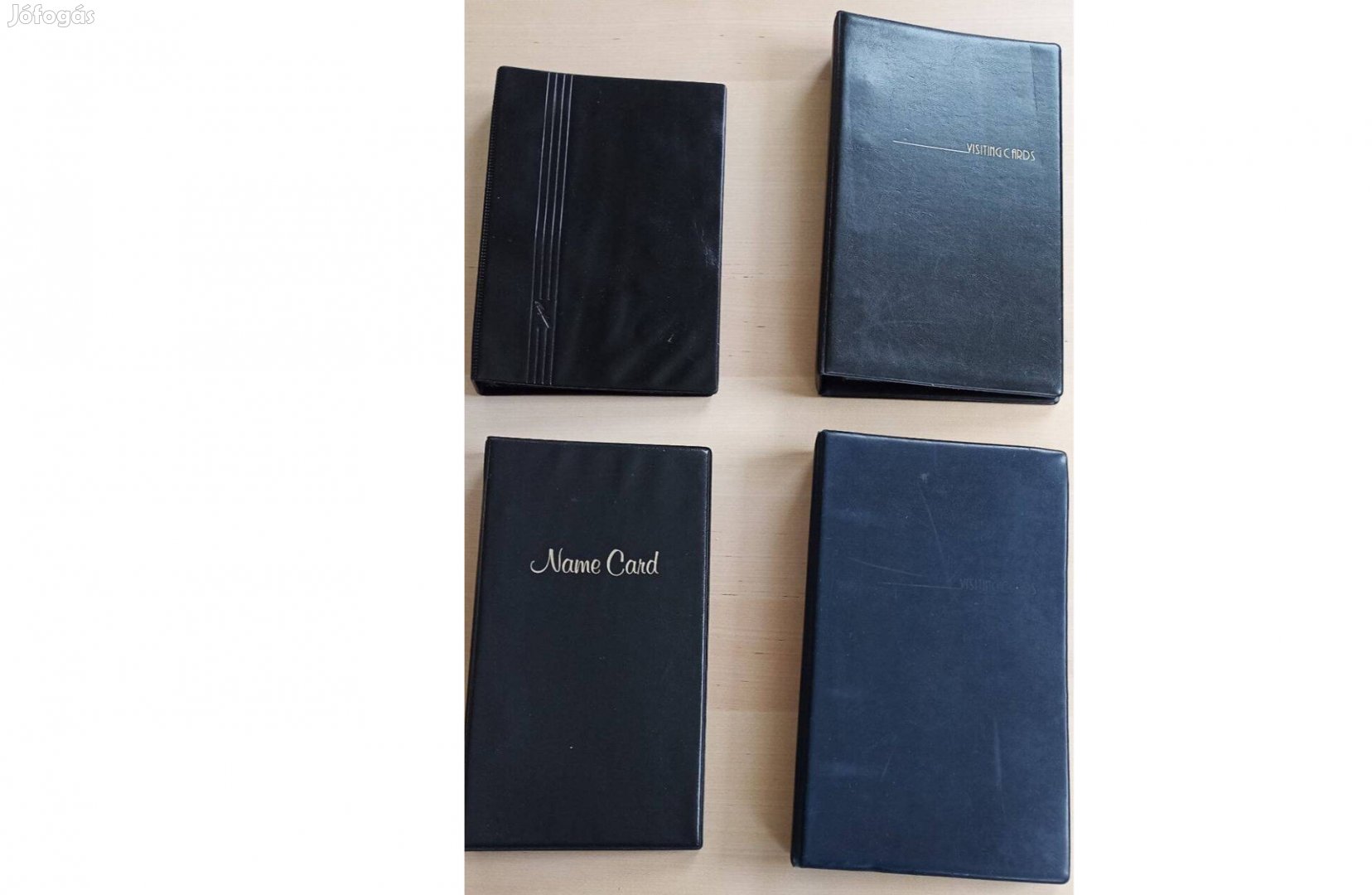 Eladók a képeken látható névjegykártya-tartók. Mindegyik jó állapotú, gyűrűs, átrendezhető, újabb lapokkal bővíthető. A kihajtott első lapon látható a benne elférő normál névjegyek száma.